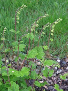 Ook zo’n topper met fijne bloemetjes op lange stengels is Tellima grandiflora ‘Rubra’. Quasi plantvorm en bloeiwijze heeft het iets weg van Heuchera, maar hij is, onterecht, veel minder te zien in tuinen. Als de bloemstengels zich oprichten wijzen ze, als heuse antennes, allemaal één kant uit. De plant verlangt iets meer schaduw en vormt dan een mooie bladtoef, die ook in de winter deels groen blijft.